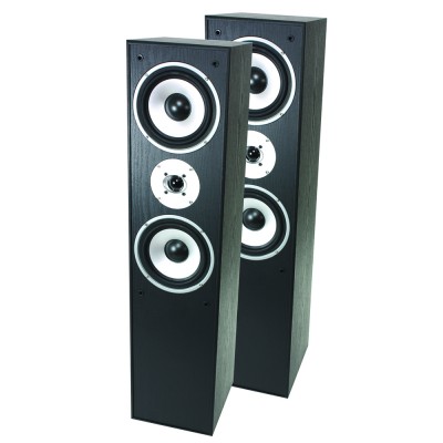 Paire d'enceintes Hifi 3 voies bass reflex 350 W de couleur noire.