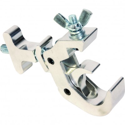 Aluminium G-shaped stage clamp with quick fastening system for safe light projectors and effects hanging. For 48-52mm tubes. Max charge 150Kg.