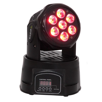 Questa piccola ma potente testa mobile wash con 7 sorgenti LED RGBW da 10 W ognuna è controllata da DMX, ha il controllo intelligente della temperatura e la visualizzazione del tempo operativo.
